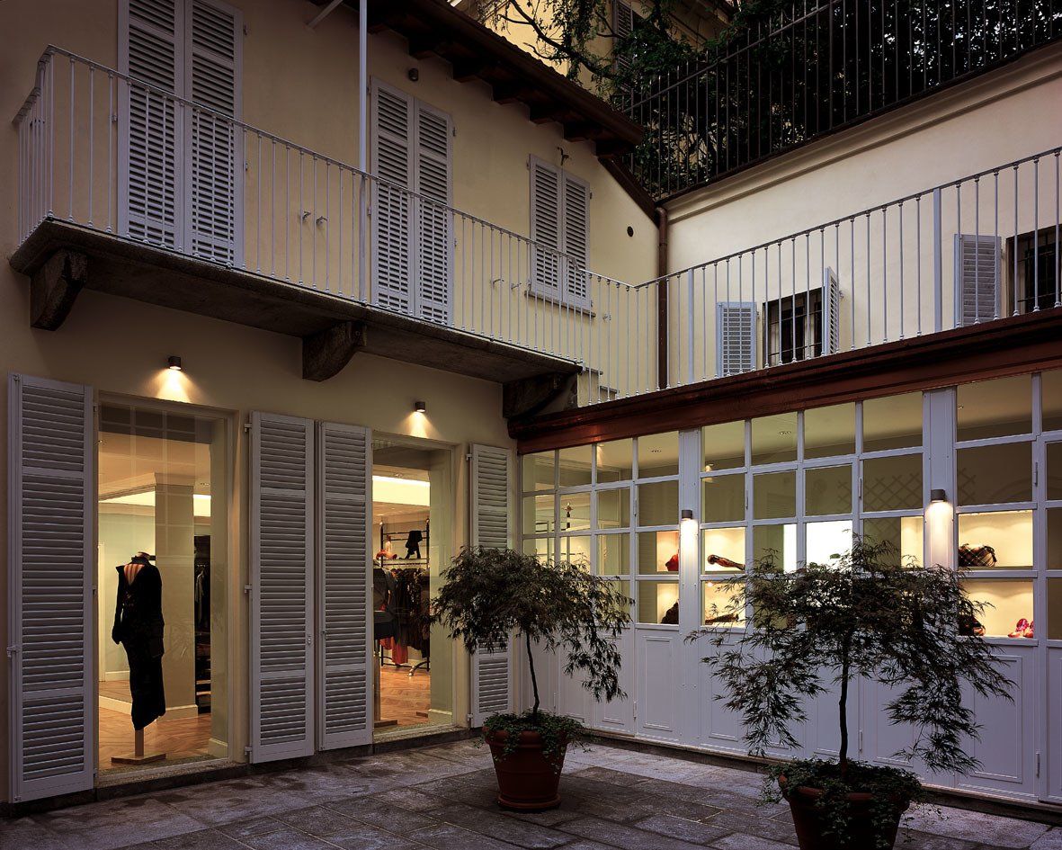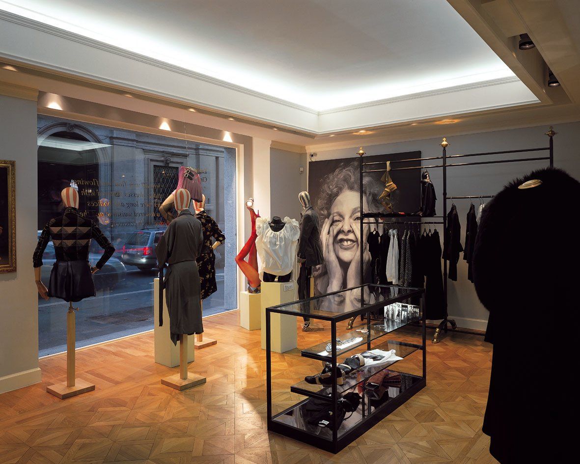 In addition to the construction of prestigious private residences, in Milan, we start working for the fashion world, designing architecture and interiors of showrooms and shops, in Italy and abroad, such as the architectural project and the interior of the new six-storey building in Milan in Corso Venezia, for the famous English fashion designer Vivienne Westwood.